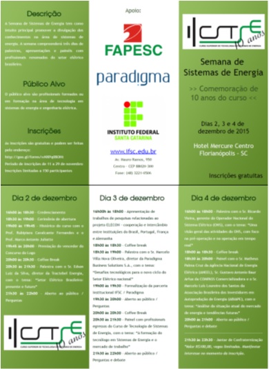 Instituto Federal de Educação, Ciência e Tecnologia de Santa Catarina. Departamento Acadêmico de Eletrotécnica. Curso Superior de Tecnologia em Sistemas de Energia. Evento Semana de Sistemas de Energia.Resumo