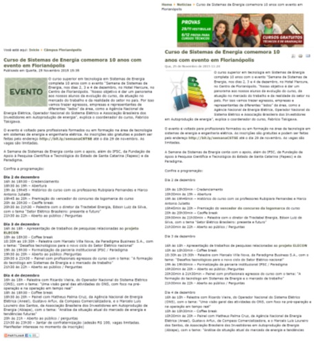 - Figura 6 – Divulgação nos sites do IFSC.