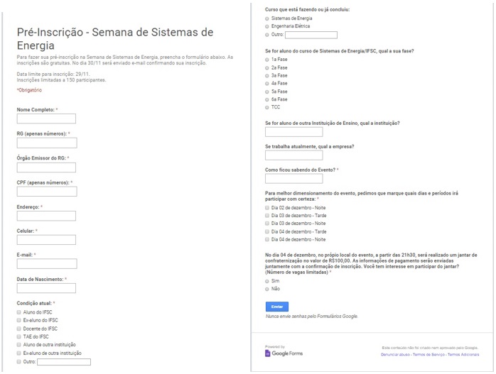 - Figura 7 – Formulário de inscrição