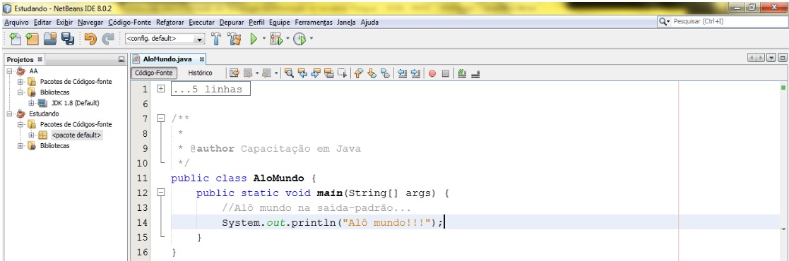 - Figura 1 - Área de trabalho do NetBeans 8.0.2 e utilização do JDK 7u51