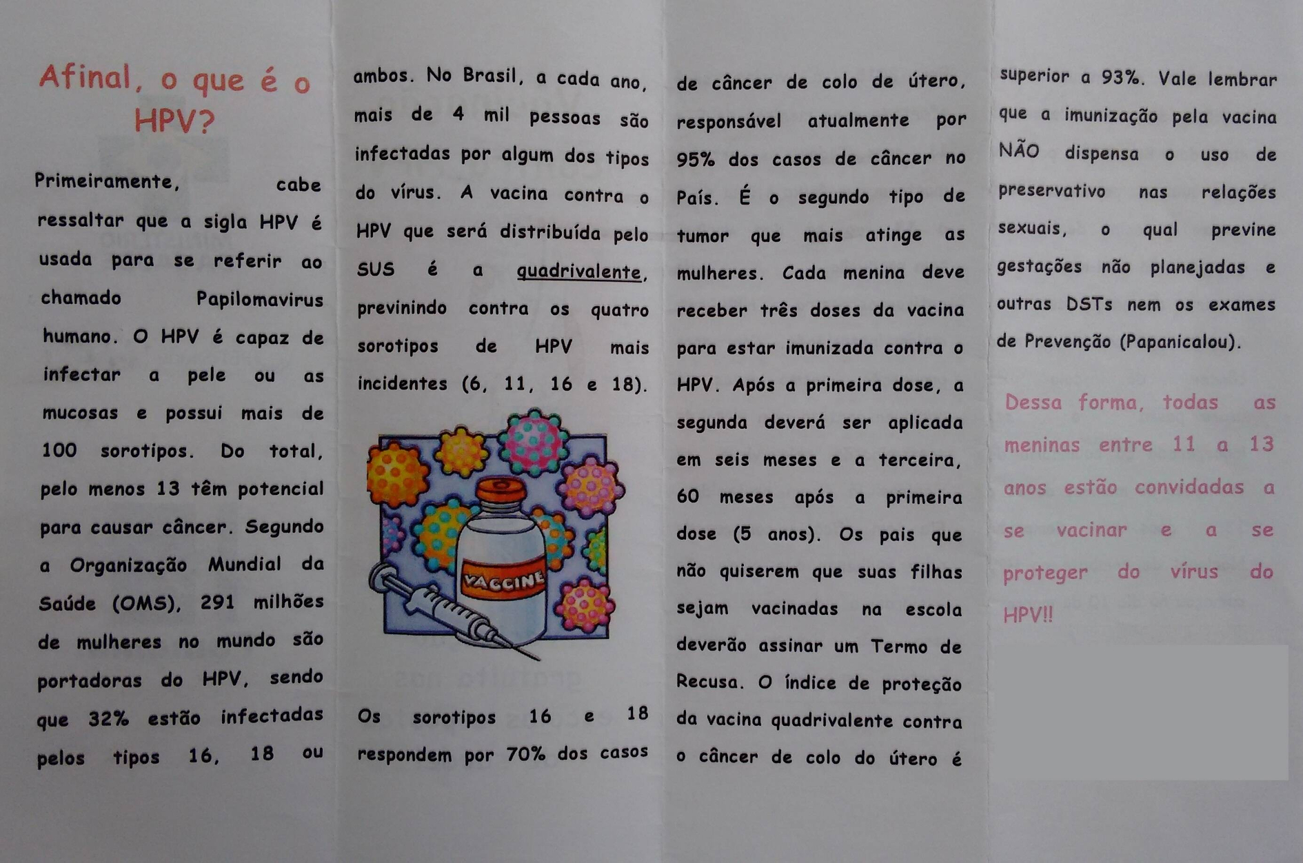 Orientações sobre vacinação contra o HPV em escolas públicas no interior do Estado de São Paulo